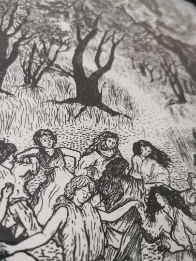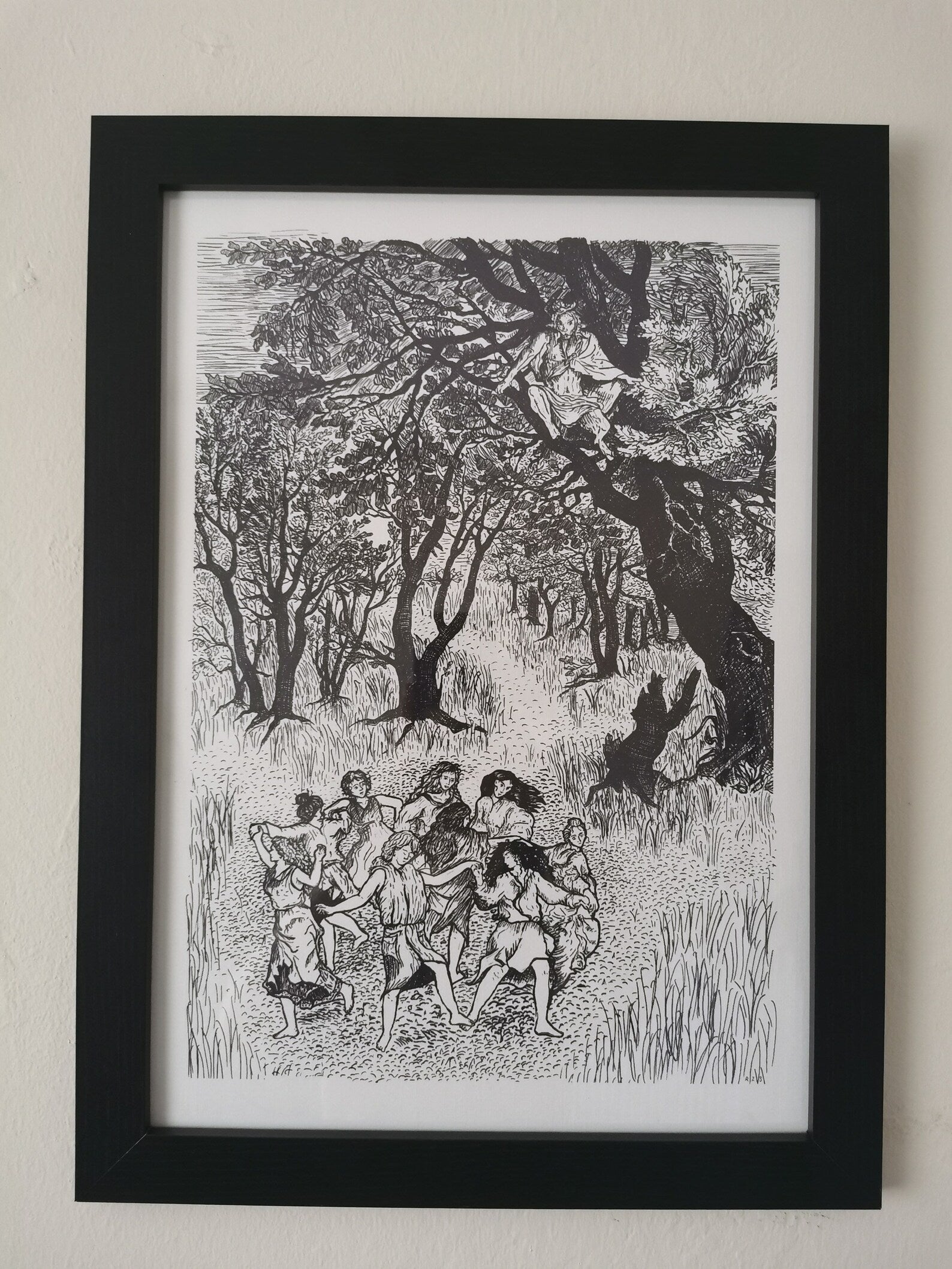 An A3 print based on the legend of the nine ladies stone circle at Stanton Moor.